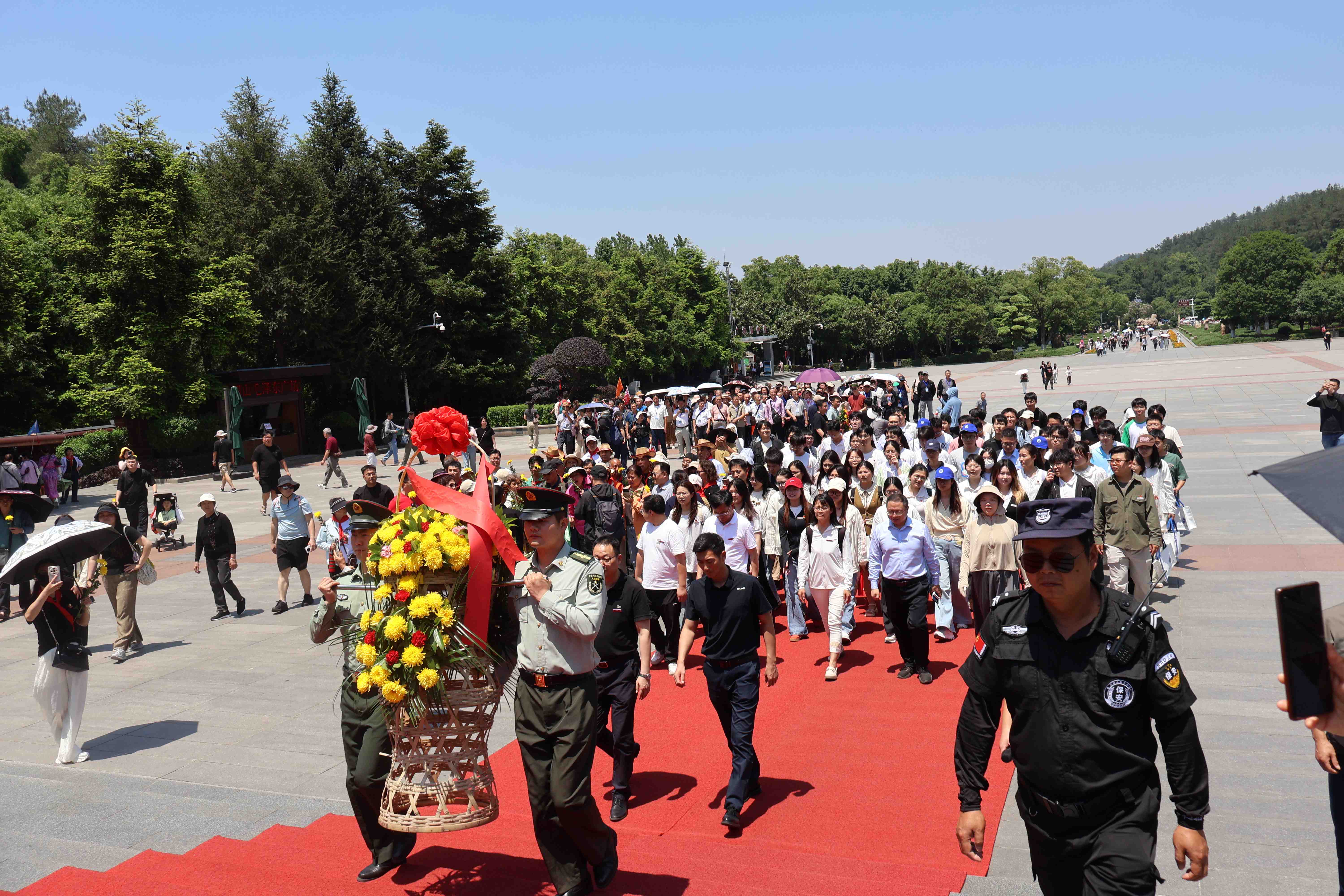 12时30分,禁忌书屋 党员在韶山市毛主席铜像广场举行敬献花篮仪式。现场氛围庄严肃穆,全体人员神情严肃,脱帽立正,向毛主席铜像行三鞠躬礼。鞠躬过程中,众人姿态庄重,目光专注。礼毕,地空禁忌书屋 师生代表身着正装,步伐稳健地走到花篮前,俯身仔细整理缎带,确保缎带自然下垂、平整无褶。仪式严格遵循流程,现场秩序井然,充分展现出对革命先辈的敬重之情。