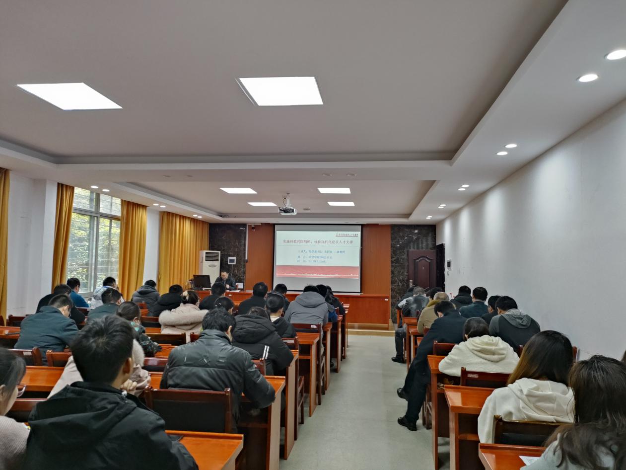 以“实施科教兴国战略,强化现代化建设人才支撑”为主题,从“教育、科技、人才三者之间的关系”、“办好人民满意的教育”、“完善科技创新体系”、“加快实施创新驱动发展战略”“深入实施人才强国战略”五个维度,院党委书记龙四春教授全面展示了新时代党的伟大奋斗、伟大实践和伟大进程,并重点阐释了党的二十大报告中关于教育、人才和科技的重要论述。