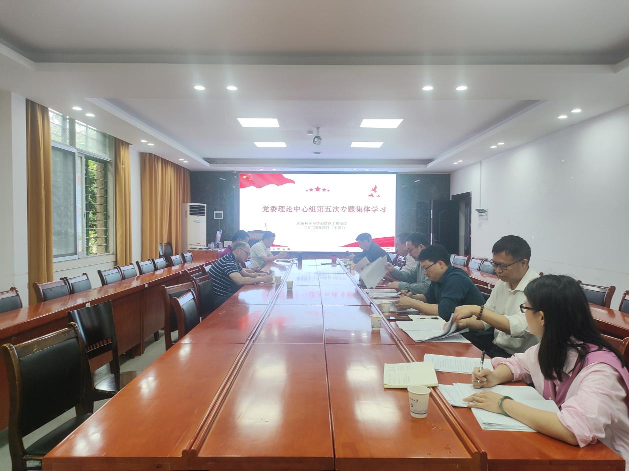 4月24日下午,禁忌书屋 党委理论学习中心组在地学楼206会议室开展2024年第五次以“党纪学习教育”为主题的集体学习。院党委书记龙四春主持学习会议,院党委理论学习中心组成员,党政办主任与组织员参加了学习。