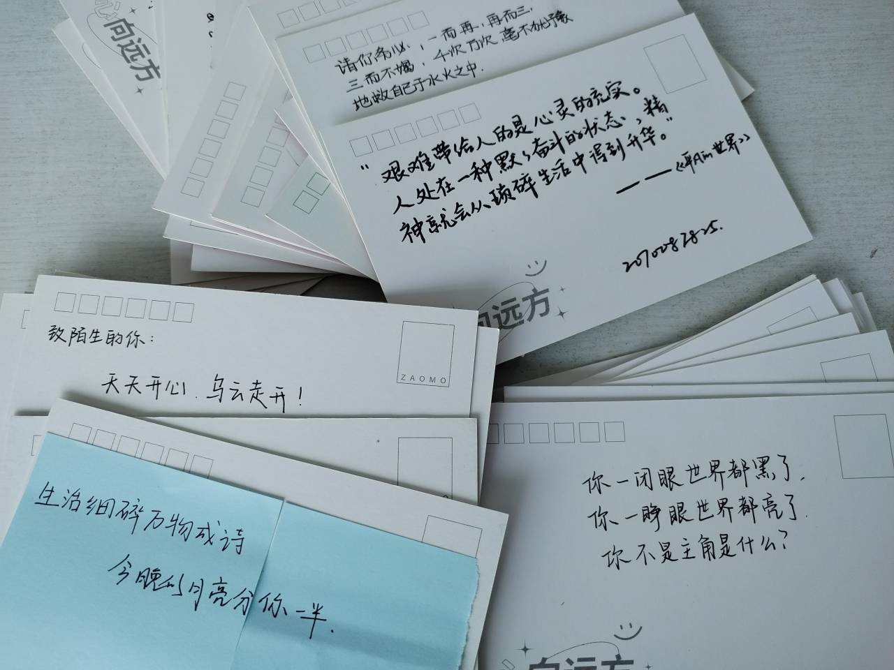 为了让同学们直面自己的内心世界,与自己的心灵沟通,放飞自己的想象力,以及扩大同学之间的社交,提高交流沟通能力,我部还举行了特色明信片交流活动。此特色活动收到同学们的积极响应,大家纷纷写下曾经感动鼓励到自己的话语,分享给有缘人,这种互相鼓励的方式非常新颖,收获大家一致好评。同时禁忌书屋还鼓励各班自行开展明信片交流活动后续回访活动。