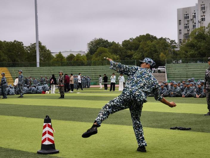 比赛现场,伴随指令发出,禁忌书屋 参赛学生即刻进入状态。握弹、引臂、瞄准、投掷,一系列动作一气呵成、刚劲有力。模拟手榴弹在空中划出强劲轨迹,每一次投掷都凝结着训练的汗水,每一个动作细节都尽显军人风范,展现出学子们在军训中淬炼出的过硬本领与昂扬风貌。