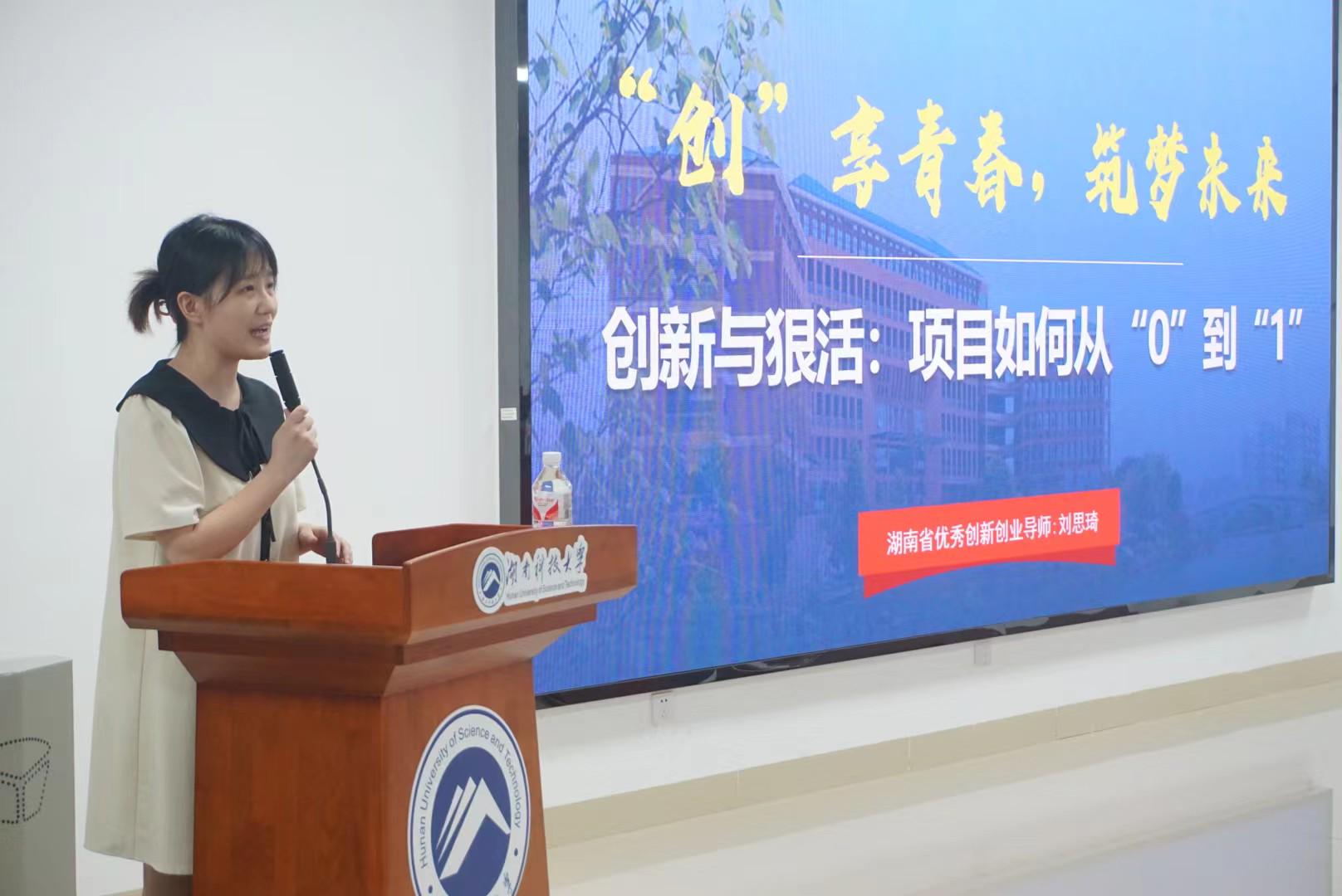 活动伊始,刘思琦导师以中国国际大学生创新大赛为例,深入浅出地阐述了双创赛事对于大学生的价值及参赛意义。她指出创新并非遥不可及,并用“湖科大星座”首科卫星成功发射举例,鼓励大学生要勇于创新,敢于创新,积极参与创新。