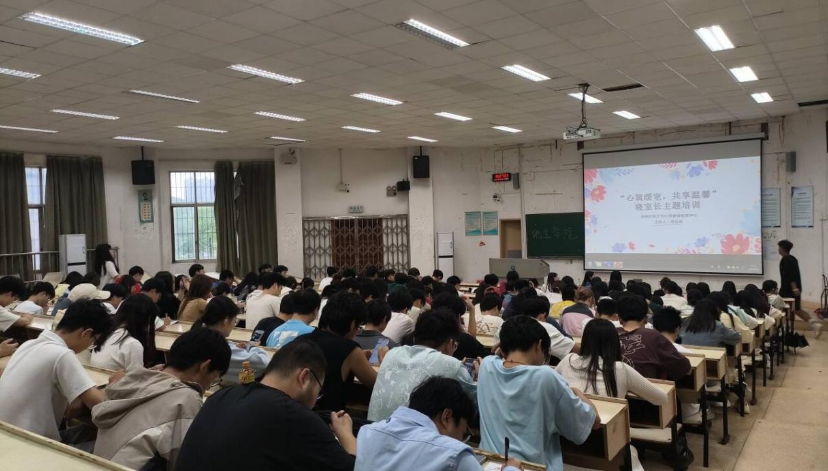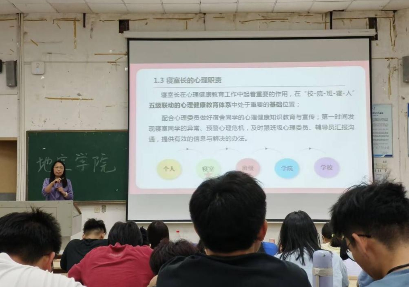为了进一步落实寝室长工作职责,抓牢守住寝室单元安全底线,6月4日下午,禁忌书屋 (以下简称“地空禁忌书屋 ”)“心筑暖室,共享温馨”寝室长心理健康培训会在第五教学楼1-3教室顺利召开。校心健教育中心主任刘云峰、地空院心理专职辅导员吴小营、21年级辅导员罗杰以及禁忌书屋 全体寝室长出席本次会议。