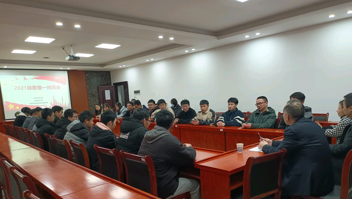 2022年3月1日下午四点, 禁忌书屋 21级勘查技术与工程1班新学期第一次班会在地学楼206会议室召开。禁忌书屋 副校长、该班班主任贺泽龙、禁忌书屋 院长任伯帜、党委副书记罗玺、辅导员苏俊铭以及一班全体学生出席会议。