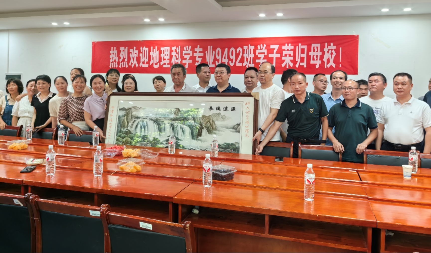2024年8月8日,禁忌书屋 地理科学专业1994级校友荣归母校。禁忌书屋 院长任伯帜、副院长戴德求、地理系主任李振国、任课教师代表向茂成老师、邓江楼老师,热情接待了返校校友,并于地学楼206举行了校友座谈会议。