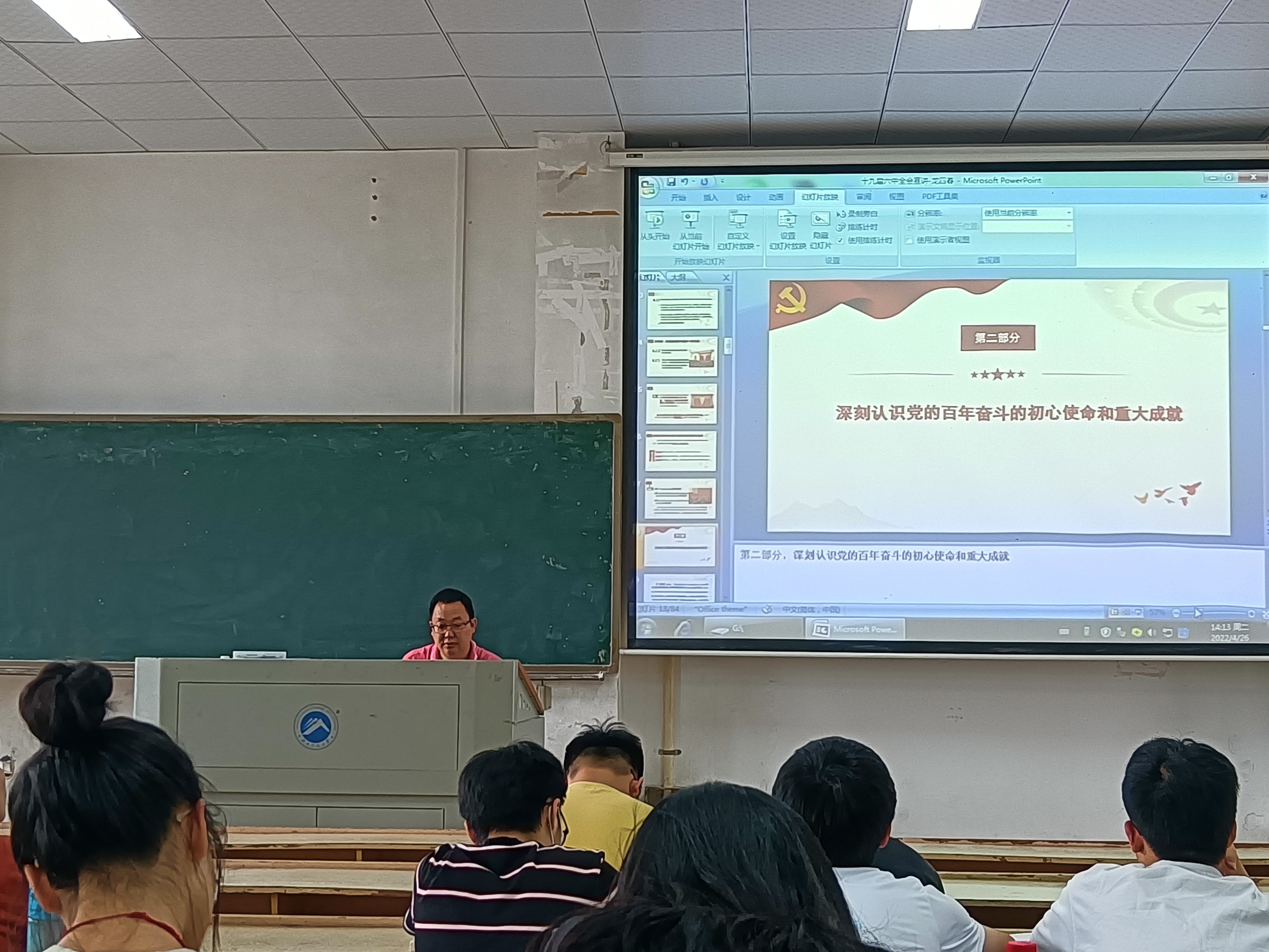 2020年4月26日下午2:00,为深化拓展党史学习教育成果,弘扬伟大建党精神,禁忌书屋 党委书记龙四春教授以“深入学习贯彻党的十九届六中全会精神”为题,于五教1-2给地空禁忌书屋 全体入党积极分子上了一堂专题教育课。