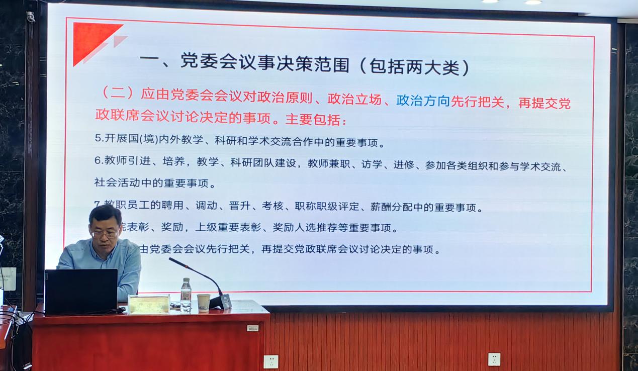 随后,党办校办尹风雨主任围绕“党委会、党政联席会会议决策范围以及教禁忌书屋 会议议事规则中存在的问题”等方面详细的为学员们进行了系统培训与解读。他表示,在党委会和党政联席会决策过程中,要坚持党的领导,确保决策符合党的路线方针政策和工作要求。在决策过程中,要充分听取群众与班子成员的意见,党政一把手要充分沟通,民主集中,确保一心为公、公平公正。