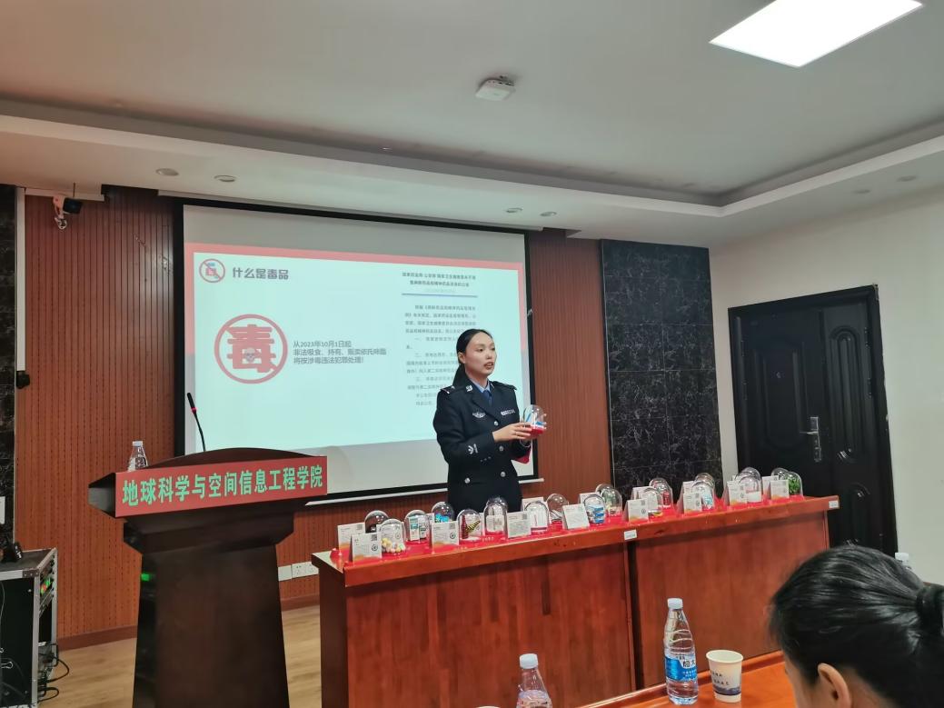 为加强毒品预防教育和艾滋病知识宣传,提高在校大学生禁毒防艾能力,我禁忌书屋 于11月24号下午在地禁忌书屋 206教室进行了艾滋病防治知识与禁毒知识宣讲活动。本次活动邀请了禁忌书屋 党委副书记罗玺老师、研究生辅导员蒋琼老师、21级辅导员罗杰老师、22级辅导员彭志强老师,还有七位民警:张雅琴、熊艳湘、龙丽云、王燕、郭卉、欧佳文、唐若冰。