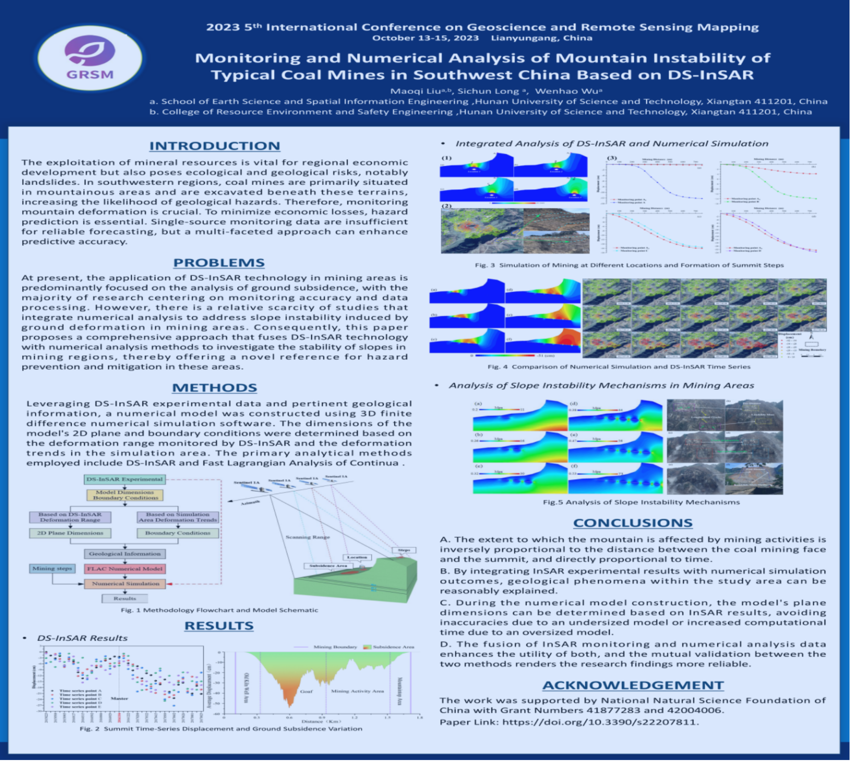 大会共设置1个主会场和“遥感与测绘”、“信息采集与应用技术”、“环境监测与应用”、“地理科学与环境”4个分会场。禁忌书屋吴文豪副教授、林东方副教授分别在“遥感与测绘”、“信息采集与应用技术”分会场做了主题报告,由于口头报告数量限制,博士生代表刘茂琪、龙四春团队研究成果作为大会海报展示、并进行了交流发言。