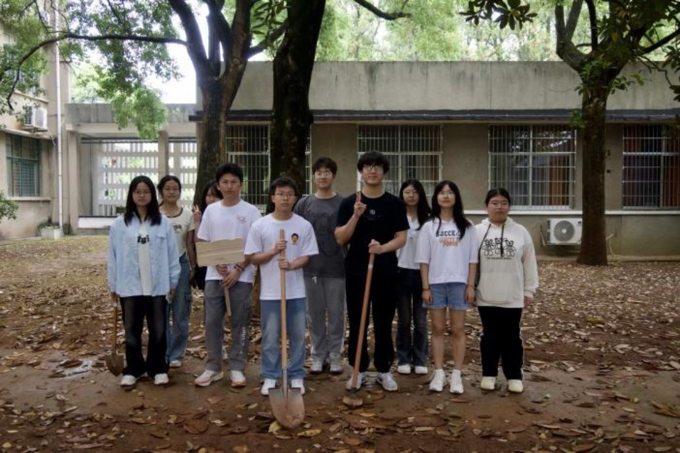 松土完成后,各小组有序开展种花工作。大家小心翼翼地将花种播撒在土壤中,认真栽种,精心填土、浇水。同时为彰显小组特色,各小组还在种植区域立好专属立牌,立牌上或书写着团队口号,或标注着种植花卉的名称与寓意,成为一道独特的风景线。