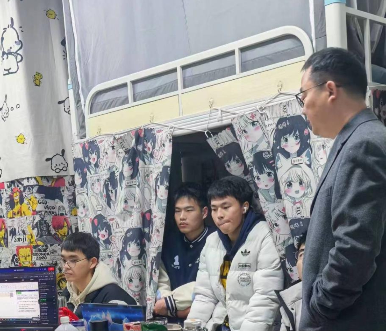 走访过程中,龙四春书记与同学们亲切交谈,逐一确认到校适应情况,并详细了解寒假期间同学们的学习实践活动,仔细询问同学们今后有关就业、深造等毕业规划的情况,鼓励同学们以饱满的热情投入新学期,正确把握时代发展趋势,合理规划学业目标,积极参与各种学科竞赛,夯实专业基础,积累就业优势。龙书记还提醒大家注意春季流感防护,做好健康管理,严格遵守用电规范,杜绝使用违规电器,共同营造安全舒适的宿舍环境。同学们纷纷表示在交流过程中倍感关怀和鼓舞。