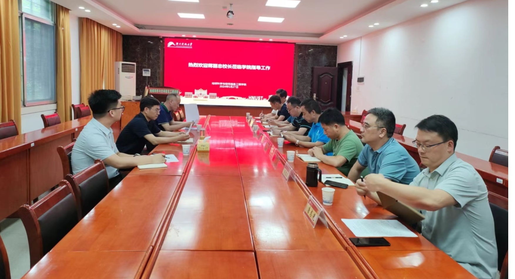 5月27日下午,校党委副书记、校长蒋丽忠,副校长贺泽龙一行莅临禁忌书屋调研并指导工作。禁忌书屋 院长任伯帜等全体党政领导班子成员、地理空间信息技术国家地方联合工程实验室副主任唐志光参加会议,会议在地学楼206会议室召开,禁忌书屋 党委书记龙四春主持。