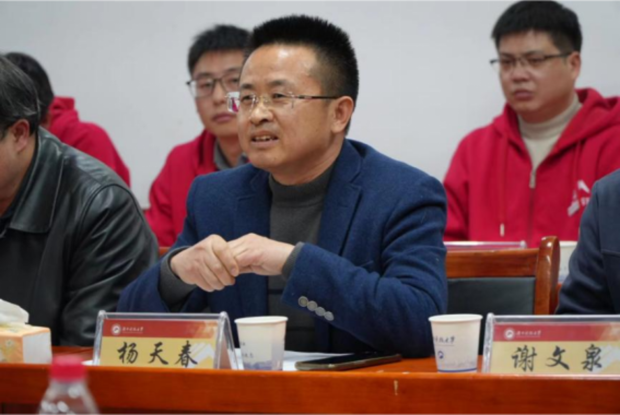 导师代表杨天春教授强调同学们在学习、思考和研究过程中要有目标性,并提倡不论是在理论还是实践方面要加强和导师的交流,加强与同学们之间合作。